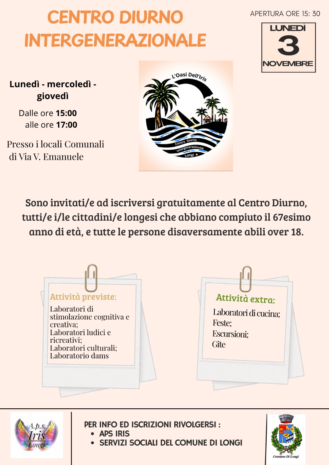PER PARTECIPARE ALLE ATTIVITA' rivolgersi all'Associazione APS IRIS o all'Ufficio Comunale dei Servizi Sociali