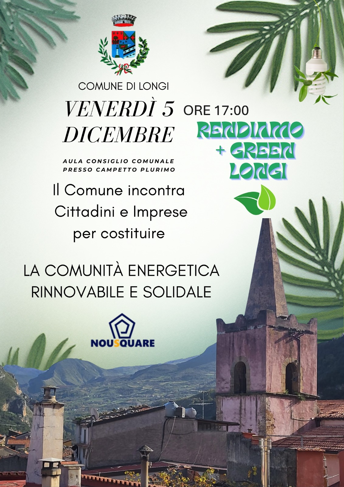 Il Comune incontra i cittadini e le imprese per costituire la comunità energetica rinnovabile e solidale.